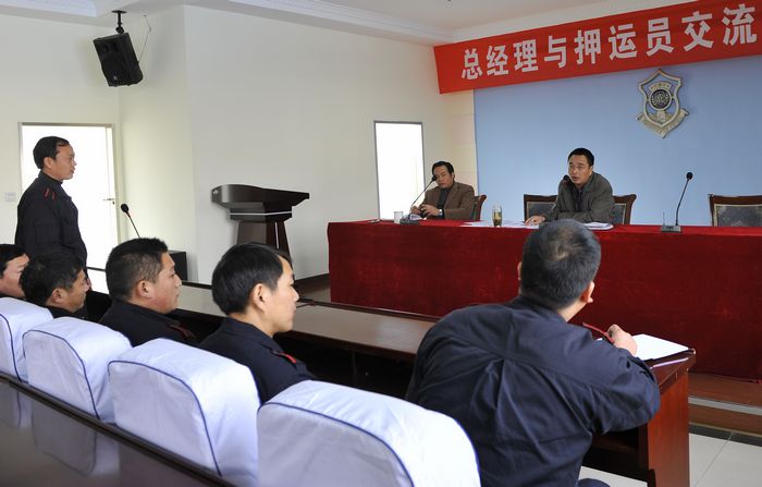 为了进一步加强守护押运队伍管理,适时掌握一线队员的思想动态,2010年11月27日上午, 公司在押运中心三楼召开了“总经理与押运员面对面交流座谈会”。押运中心市区全体守押人员、县区押运员代表和公司各部门负责人及机关部分员工160余人参加了会议。
