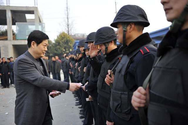 2月3日大年初一上午,市公安局党委委员、副局长、纪委书记初晓在公司总经理娄伯翱、副总经理王克、徐文刚的陪同下,亲切慰问了总公司武装押运员并发放了慰问金。初书记代表市局党委向大家拜年并致以节日的问候和祝福!