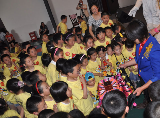 《肢体传话》游戏中,让8-12岁的孩子们得到了胆量的锻炼,也培养了孩子们的协调能力。最搞笑的是一组孩子中,一个10岁的孩子将“拖地”动作演绎成“拉琴”,台下笑作一团,孩子们纯真的脸上更是笑靥如花。