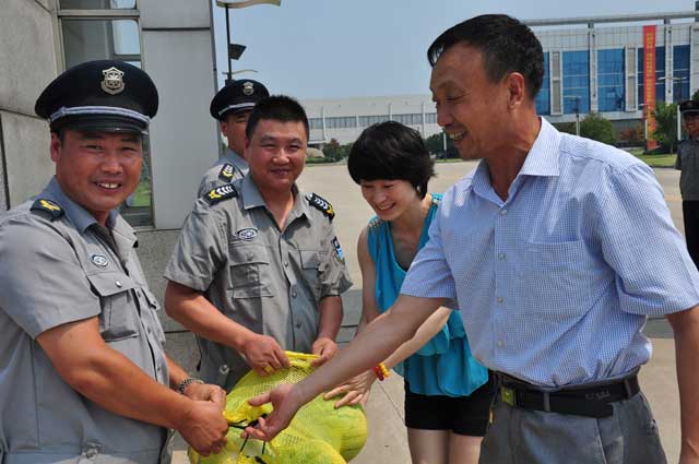 7月23日,总公司政管理中心组织相关人员深入一线,开展“爱员工,送清凉,查安全,保平安”活动,慰问高温酷暑下敬业奋战的一线保安员工,并为他们送上西瓜、纯净水等消暑物品。
