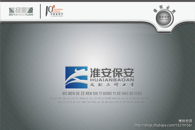 1、主图标后部以抽象的两个握紧的拳头羽翼状分布象征力量与团结 事业腾飞,中心盾形设计象征实力与安全配以皇冠和星形象征安保力量血统纯正服务品质优良。