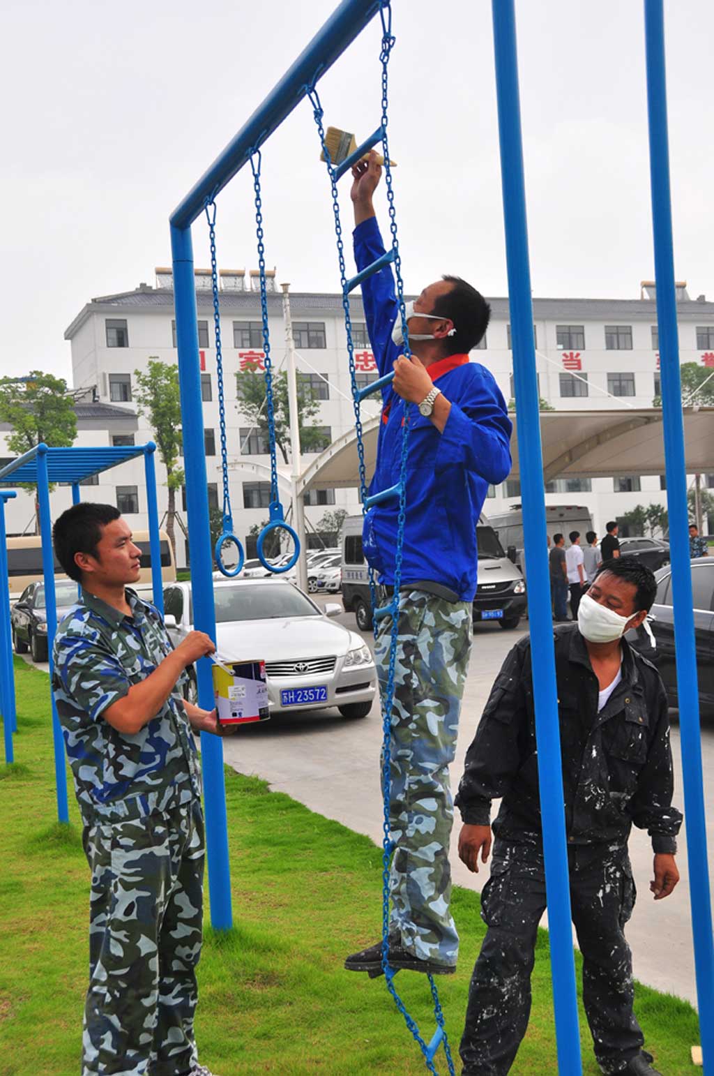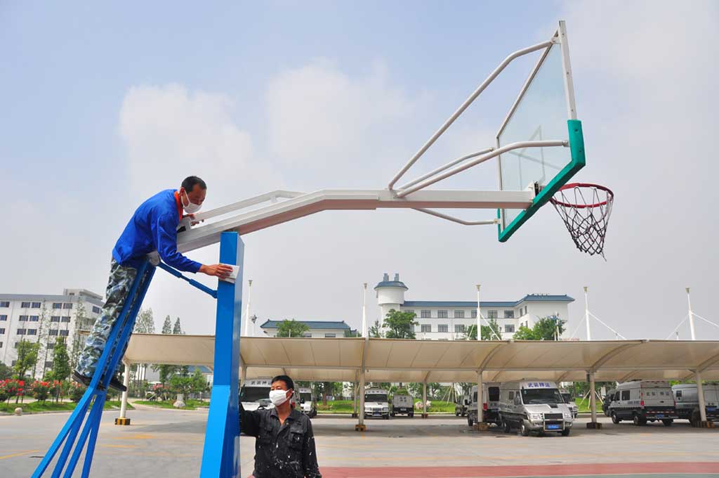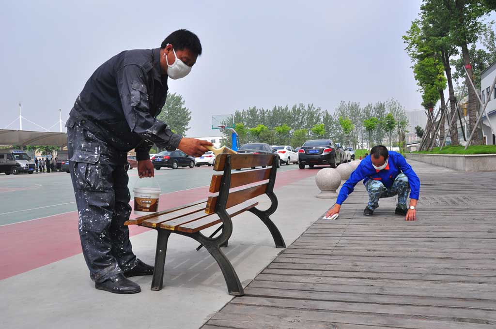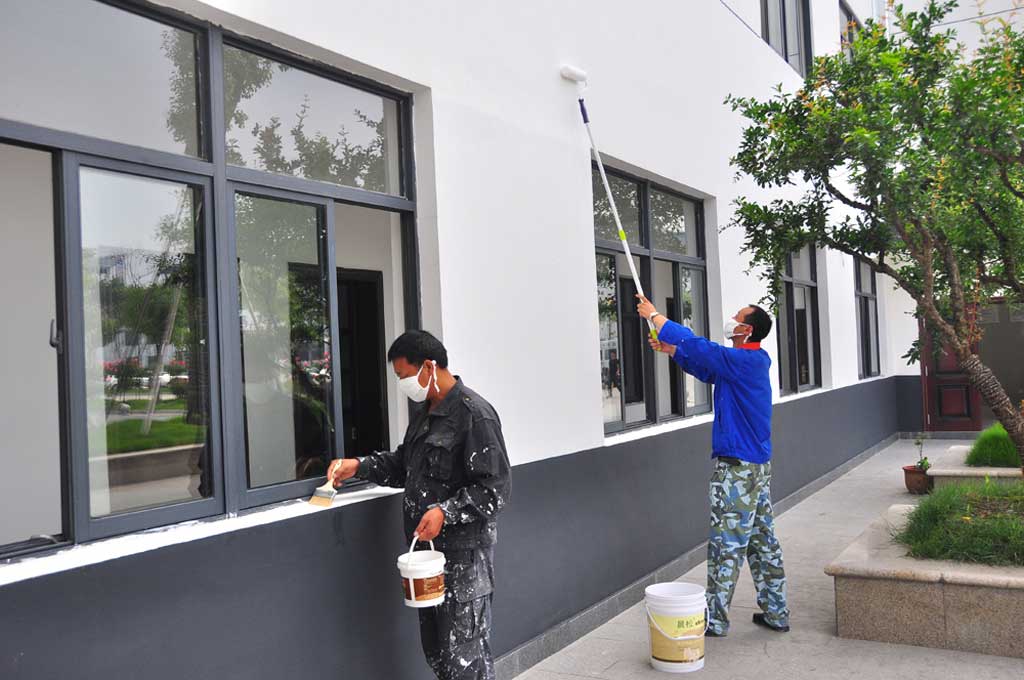 接到任务后,赵炳华、丁云清2名同志首先对所有施工现场进行了察看和预算,并制定了施工方案。基于押运楼是在老平房的基础上翻新加层建筑,使得部分房间墙面脱落并出现裂缝,楼体墙面防水层破损,每逢下雨天便有雨水不同程度的渗漏,影响了办公和生活秩序,加上公司院内篮球架、单双杠器材、木椅、木桥、楼前防护木等褪色和部分损坏的情况,以及刚建好的综合活动中心二楼1100多平方米木质地板需要进行漆化处理。面对如此工程,赵炳华、丁云清2名同志迅速作出合理安排和应对措施,开始着手对楼体做好防水处理,同时将1至5层楼的队员宿舍、办公室、更衣室等所有房间1000多平方米的墙面进行打磨粉刷,并对公司刚建好的活动中心二楼1100多平方地面进行多次漆化处理,以及房屋里外设施进行了修缮。