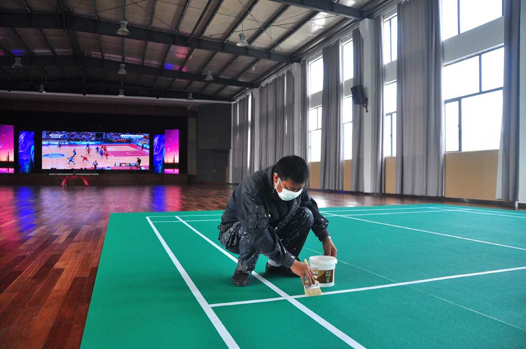 由于时间紧、工程量大、任务重,为了提前完工,他们在保证工程质量的前提下,放弃了一切休息时间,不顾天气炎热,加班加点,全身心投入到地板油漆的粉刷、押运楼墙面修缮和粉刷之中。