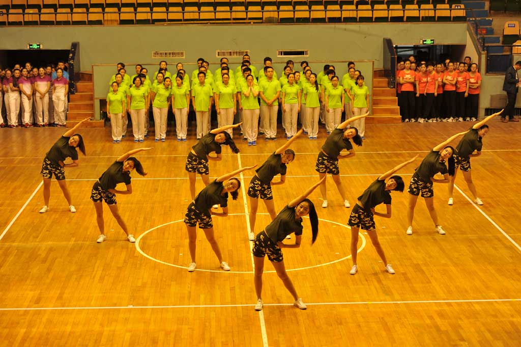 在此次活动中,所有人员充分发挥了不怕苦、不怕累的精神,积极参与排练,刻苦训练,最终获得了殊荣。由于时间紧,任务重,接到通知时已临近比赛,从各部门人员抽调到排练只用了一个星期。所有人员都是初次接触第九套广播操,所有动作都是第一次学习。人多动作复杂难以整齐划一。为了达到整齐划一的标准动作,带队崔主任带领大家一遍又一遍的练习。从早晨8点一直到晚8点,期间,所有人员克服了种种困难,训练场流下了泪水与汗水。
