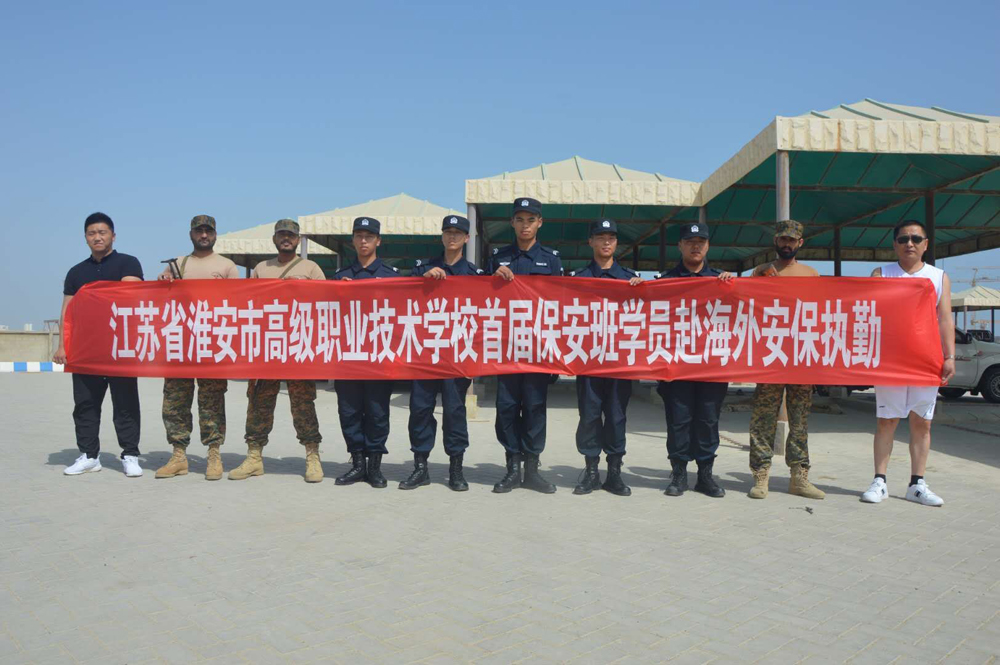 2018年6月3日,江苏省淮安市保安服务总公司高级安保专业班骆乃顺、王超、张锦元、吴恩泽、杨高伟等五名学员在总教官陈安帅带领下,赴巴基斯坦卡拉奇从事海外安保工作。