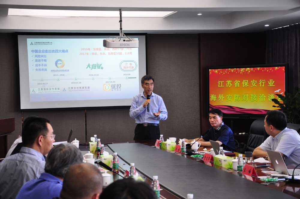 会上,江泰保险经纪股份有限公司重点发布了海外投资安全风险;江苏省海外企业集团介绍了海外投资项目有关情况,提出了具体安防需求;淮安市保安服务总公司等企业分别介绍了“走出去”的探索做法和下阶段的发展方向。