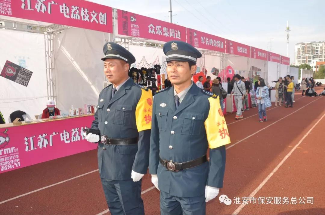 总公司派出130余名保安力量,承担音乐节的预检票口、检票口检票、安检、贵宾入口以及内场和舞台区域的管控和秩序维护等工作。此次音乐节从中午13:30开始直至21:40,执勤时间长、人员环境复杂、工作任务艰巨。总公司人防管理中心130余名保安员于中午12时准时进入预定岗位,直至音乐节结束,长达8个小时期间,淮安保安人坚守岗位、认真履职。黄红相间“淮安保安”靓丽的臂章在各个岗位上,成为音乐节的一道亮丽风景。淮安保安的严谨作风,娴熟的业务能力,文明的服务态度,得到主办单位的肯定。