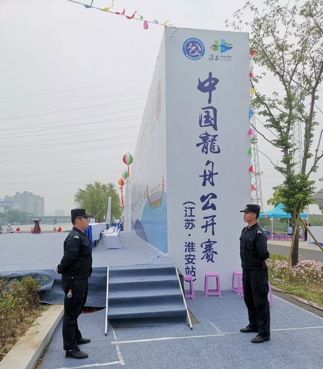 5月13至15日,第二届全国青年运动会龙舟项目预赛也将在江苏淮安里运河风光带龙首湾河段开赛,全国14支队伍441人参加,角逐山西太原的第二届全国青年运动会龙舟赛决赛资格。淮安保安执勤队员们也将在这次赛事中坚守岗位、尽职履责,抗击疲劳、化解风险,全程以饱满的精神面貌和较强的队伍素质,获得了现场群众的一致认可,圆满完成了龙舟赛活动的安全保卫工作任务。
