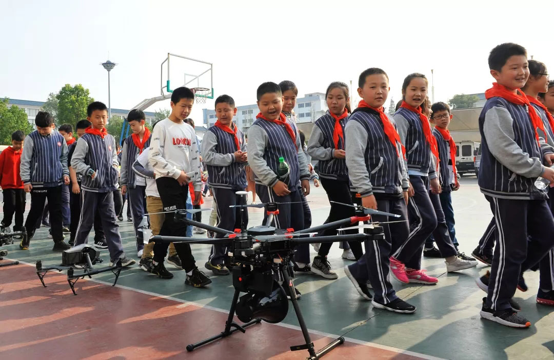 随后无人机操控手又向同学们展示了无人机飞行表演。看到无人机由地面启动到自由盘旋飞翔在空中,充满了现代感的各种无人机深深的吸引了同学们的目光。操控手耐心的给同学们介绍了无人机应用领域及各种机型,对学生们提出的疑问不厌其烦的一一解答,氛围轻松、愉快。