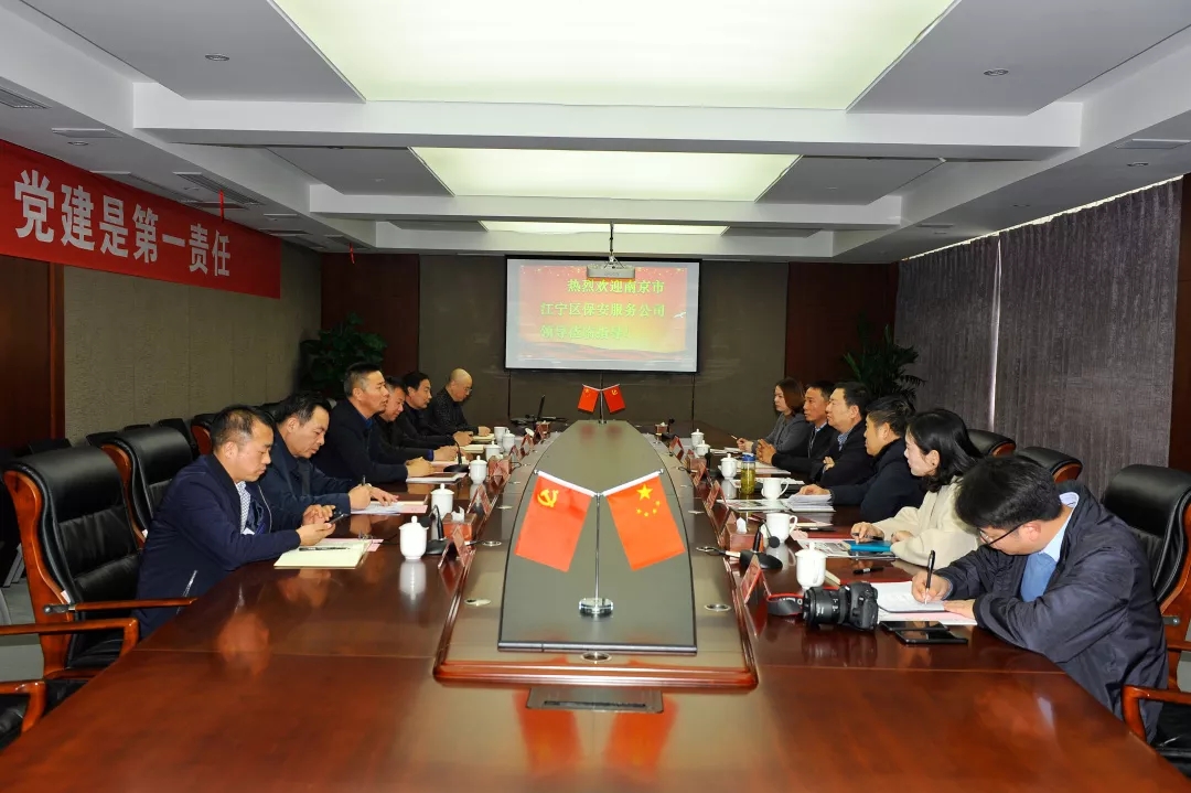 12月10日,南京市江宁区保安服务有限公司负责人陶应忠、支部书记叶兴忠、保安管理部经理杨俊、市场部经理刘影等一行6人到访淮安市保安服务总公司交流考察。淮安市保总经理赵爱忠等陪同参加交流座谈会议。