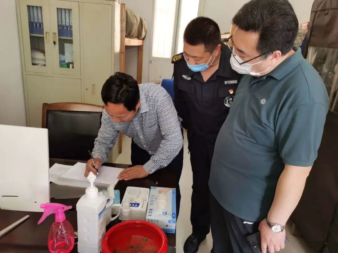 在淮安区的农商行大队,总经理助理陈峻峰带领督查组现场查看了值班记录本、登记簿,并与当班人员深入交流,了解安全生产工作的开展情况。