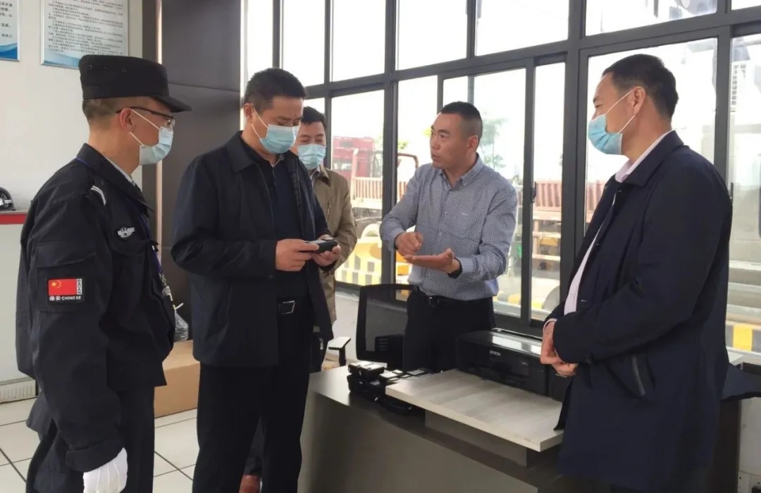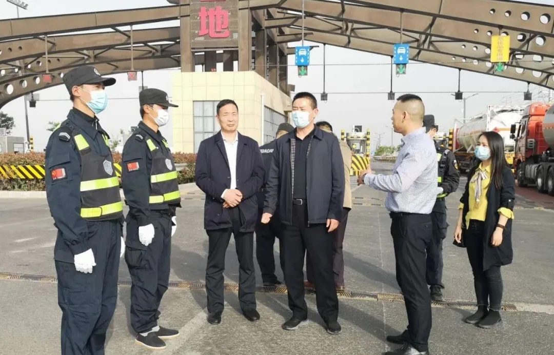 下午五点,在连云港石化基地封闭管理现场,赵总一行逐一走访了各个卡口及办证中心等服务岗位,详细查看了安全生产制度台账、工作流程规范落实情况,对全体队员在疫情期间克服重重困难,高质量完成园区封闭管理任务表示充分肯定,对领导班子良好的团队协助精神给予高度认可。