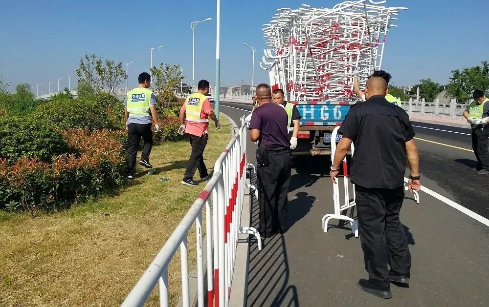 组织对沿途赛道实行全封闭,完成13000余米护栏、铁马等隔离设施的搬运、装卸、摆放。