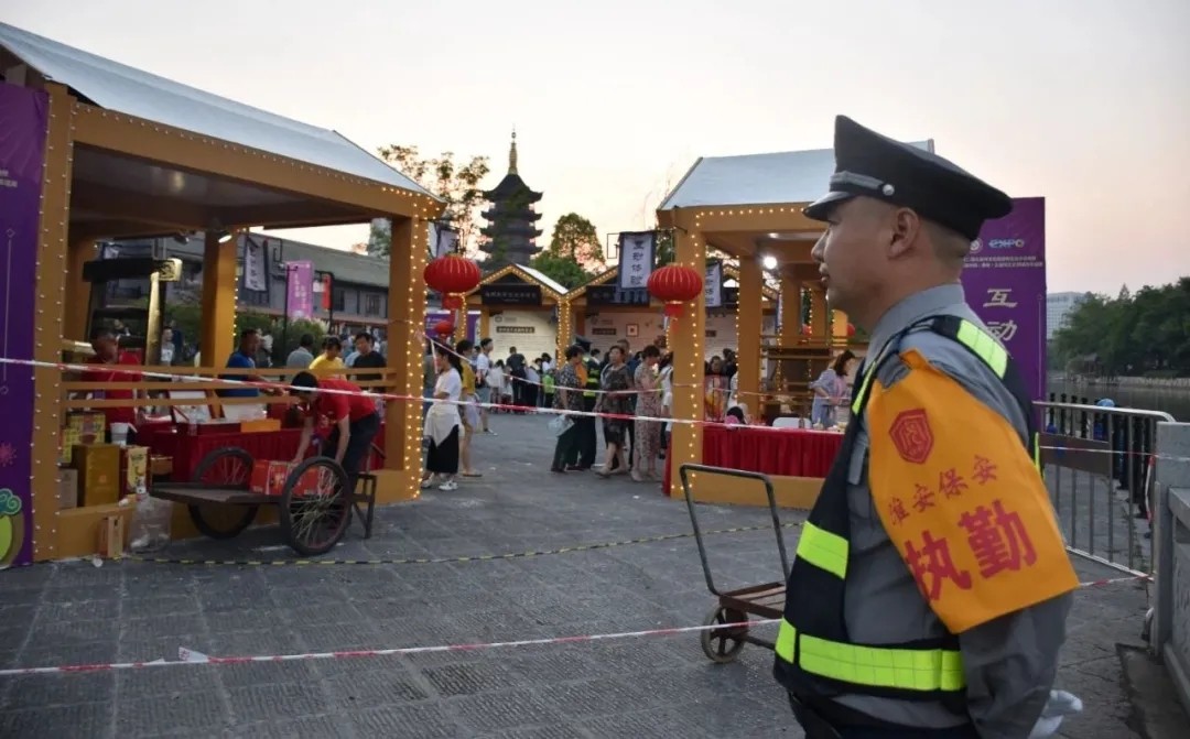活动期间,总公司共抽调保安力量600余人次,配合公安机关完成里运河文化长廊景区临时区域管控、区域隔离设施设置、在活动入口处对游客进行安检、体温测量;根据景区内人员流量情况,及时进行疏导分流;维护展会现场秩序,及时处理各种突发事件。