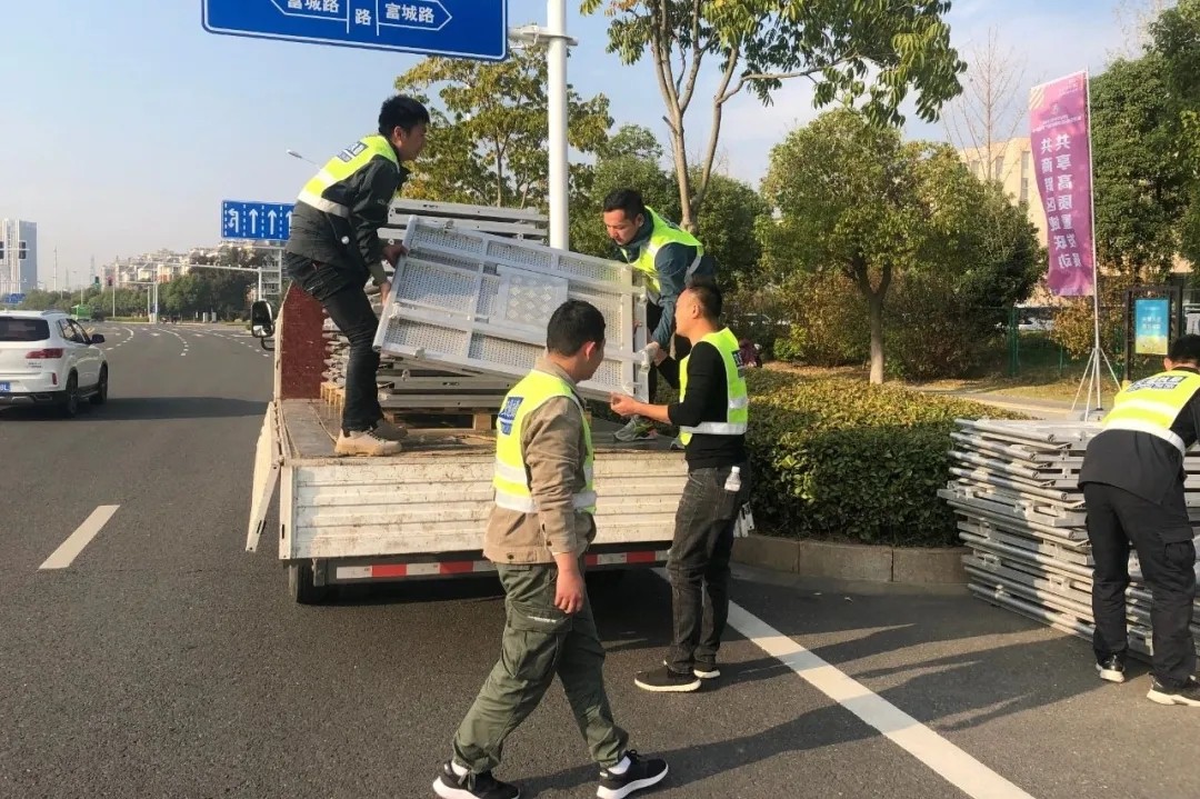 行政管理中心、财务中心、人力资源中心、押运中心等部门完成车辆保障、会务保障、工作餐制作配送、现场隔离设施运输、安装、摆放等服务工作。