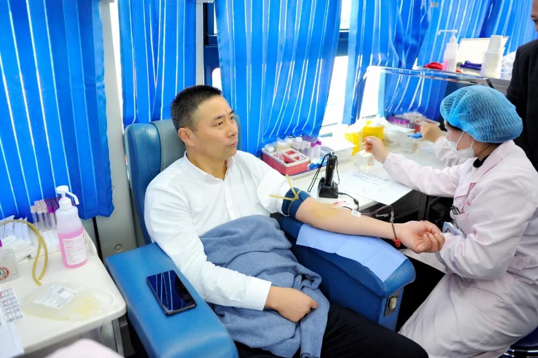 总公司党总支书记、总经理赵爱忠带领领导班子成员带头献血,切实发挥示范表率作用,以身作则,身正为范,广大干部职工备受鼓舞,踊跃报名,为社会公益事业贡献力量。
