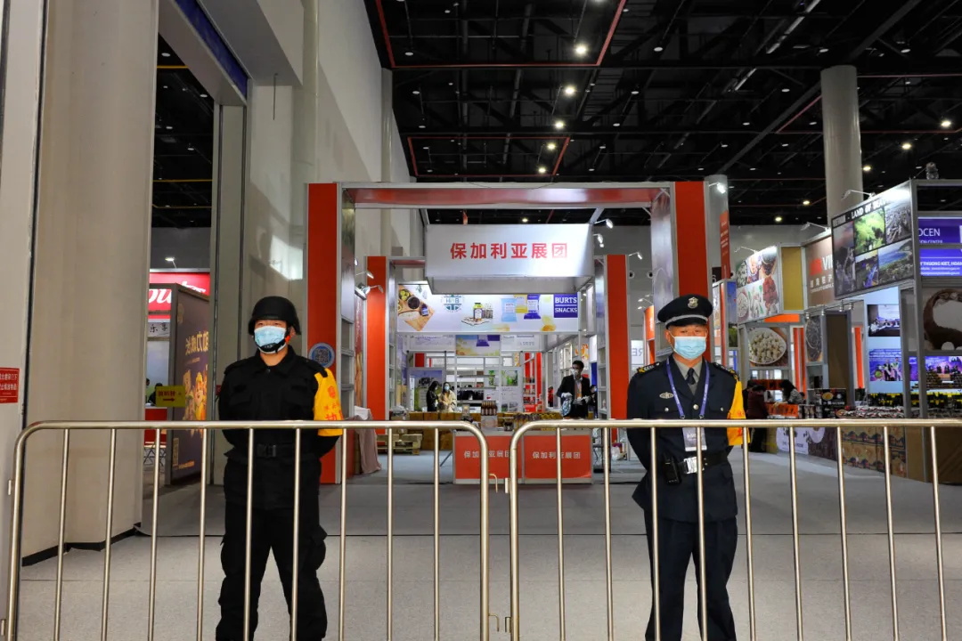 根据安保工作部署,公司前期已完成展馆现场视频监控指挥中心各项工作,安装高清人脸识别相机4台,安装高清监控球机22台,顺利接入展馆内部和周边图像300路,实现了对内、外展区监控全覆盖和图像实时传输;在展馆入口处设置X光机4台,高精度安检门22樘;组织4架无人机对活动现场周边及展馆进行空中巡查;组织11名训导员携10条警犬配合公安人员对各场馆进行搜爆安检。